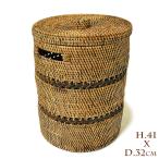 ラタン 蓋付き ボックス 円筒形[H.43cm] ランドリー 収納BOX バスケット カゴ ラタン 籐 アジアン バリ タイ エスニック 雑貨 アジアン インテリ