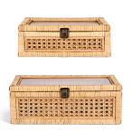 【並行輸入品】HUAXIN CRAFT H ラタンボックス 蓋付き 長方形ウーブンケース 展示用 ガラス付き ウィッカー収納デコレーション 2個