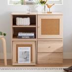 Toffy トフィー キャビネット ラタン サイドボード 幅75cm 扉付き 2枚扉 隠す収納 シェルフ マルチキャビネット 3段 ウッドボード マルチラック