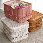 取手付き ラタンバスケット 収納ボックス 収納ケース ラタンボックス 手作り カゴ リゾート風 収納かご 収納バスケットアジアン雑貨