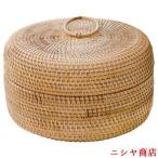 ふた付きかご 田園風 籐かご ふた付き 収納バスケット ラウンド カゴ 小物入 ラタン ボックス 茶の葉入り 収納かご 丸 お菓子入り かご
