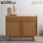 form キャビネット 幅100cm ガモット ラタン調 ( 棚 ラック 食器棚 収納 人工ラタン 引き出し )