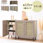 【完成品設置付き】 Toffy トフィー キャビネット ラタン サイドボード 幅120cm 扉付き 3枚扉 隠す収納 シェルフ マルチキャビネット 3段 ウッドボード