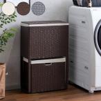 ランドリーバスケット おしゃれ 2段 ふた付き スリム 大容量 ラタン調 洗濯カゴ 洗濯かご ランドリーボックス 洗濯物入れ 脱衣カゴ ランドリー収納