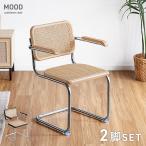 8日+5% ダイニングチェア ラタン 2脚セット 肘付き おしゃれ チェア カンティレバー アームチェア 天然ラタン ダイニング リビングチェア カンティレバーチェア