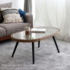 ローテーブル おしゃれ 北欧モダン ガラス 机 デスク レトロ 完成品 幅110 長方形 ラタン ジャパンディ