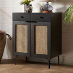 キャビネット 木製 60 扉付き 収納棚 引き出し ラタン 収納 脚付き サイドボード リビング 家具 おしゃれ 北欧 西海岸 インテリア サーフ コースタル 67181