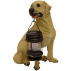 即納!ソーラーライト付きランタンを咥えたラブラドールレトリバー犬彫像屋外装飾ガーデンデコ庭園芝生贈り物輸入品