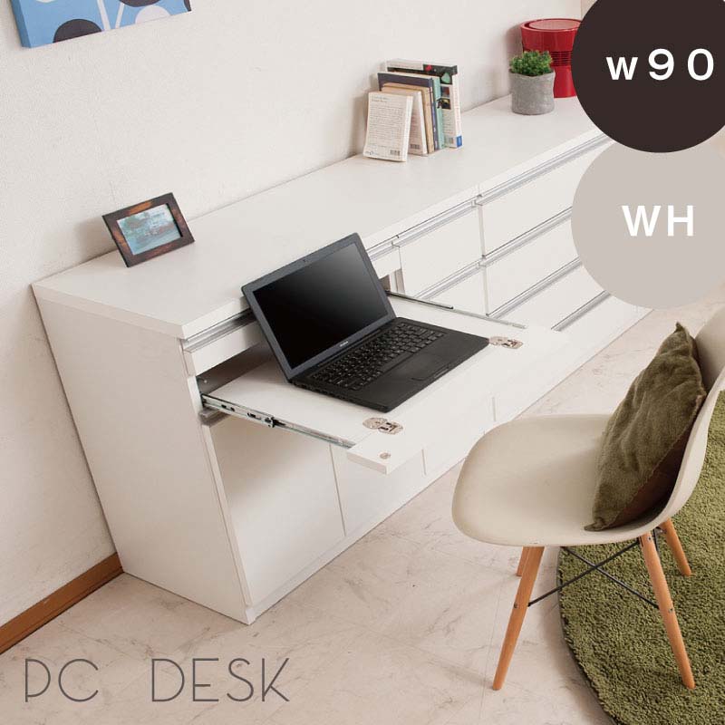 パソコンデスク PCデスク 幅90cm ホワイト TE-0120 日本製 完成品 シンプル&スタイリッシュデザイン 机 デスクキャビネット リビングキャビネット