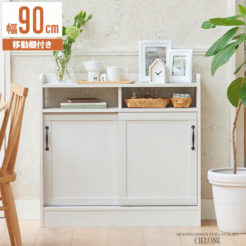 【先着10%OFFクーポン配布中★】 キャビネット 棚 スリム 薄型 木製 収納棚 キッチン収納 リビング収納 幅90cm 引き戸 移動棚 リビングキャビネット コンパクト おしゃれ 北欧 シンプル キッチン リビング 寝室 カウンター下 ホワイト cen-8590sd netc5