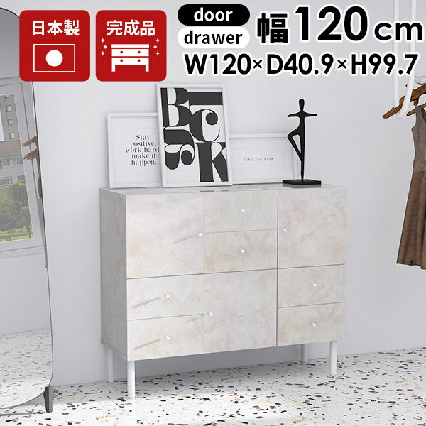 キャビネット リビング 引き出し いっぱい チェスト 北欧 120 大容量 収納 ワイド 棚 扉付き ホワイト 鏡面 大理石柄 かわいい 姫系 白家具 脚付き サイドボード リビング収納 完成品 リビングキャビネット 国産 光沢 白 リビングボード 本棚 おしゃれ オフィス ☆