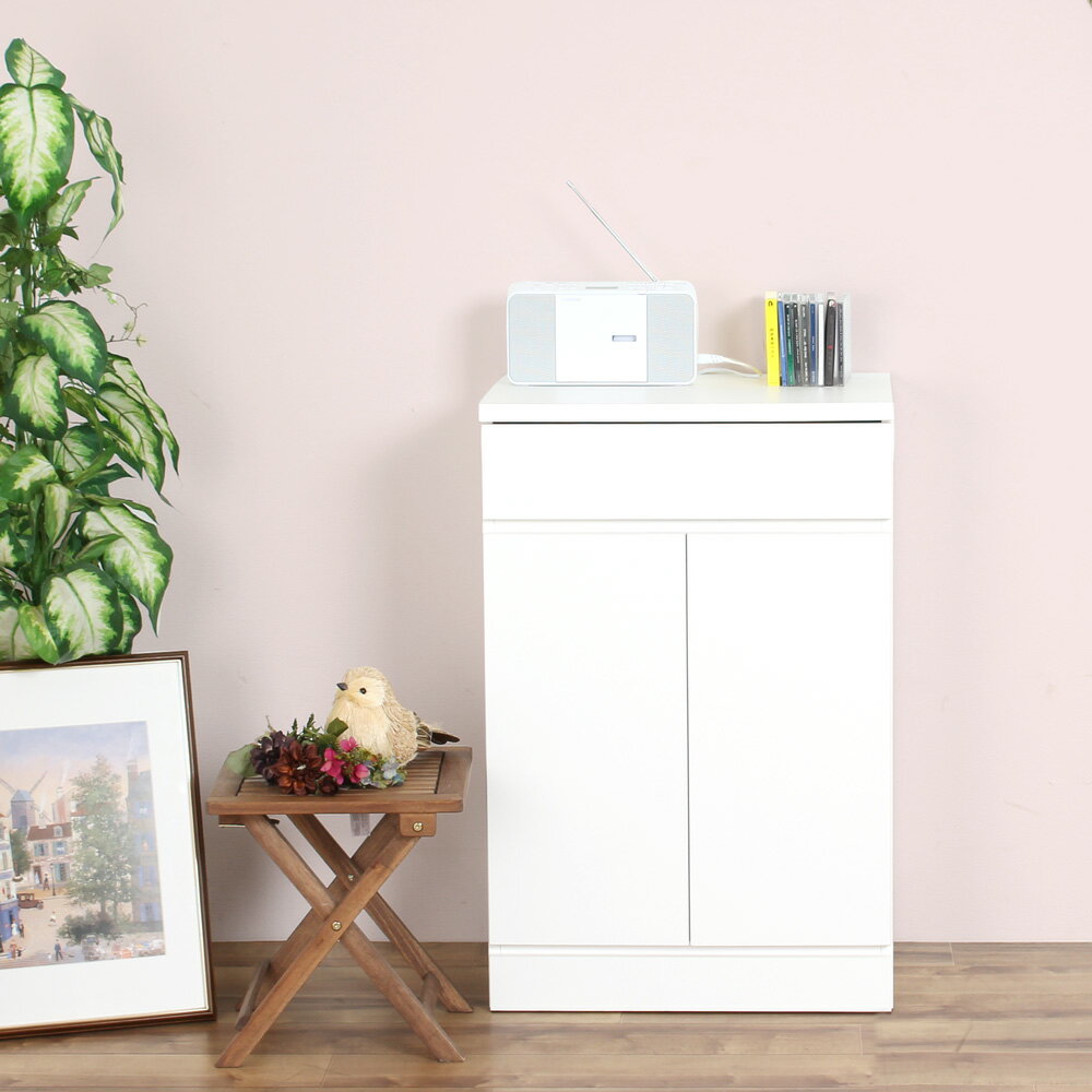 【ふるさと納税】リビングキャビネット 幅60 ホワイト 完成品 サイドボード 収納 棚 リビング収納 インテリア おしゃれ 可動棚 [川口工器]【090S003】