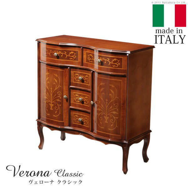 イタリア 家具 ヨーロピアン ヴェローナクラシック 丸脚リビングキャビネット W87cm 丸脚 リビング ヨーロッパ家具 クラシック 輸入家具 アンティーク風 イタリア製 ブラウン おしゃれ 高級感 エレガント 木製 天然木 リモート テレワーク 在宅