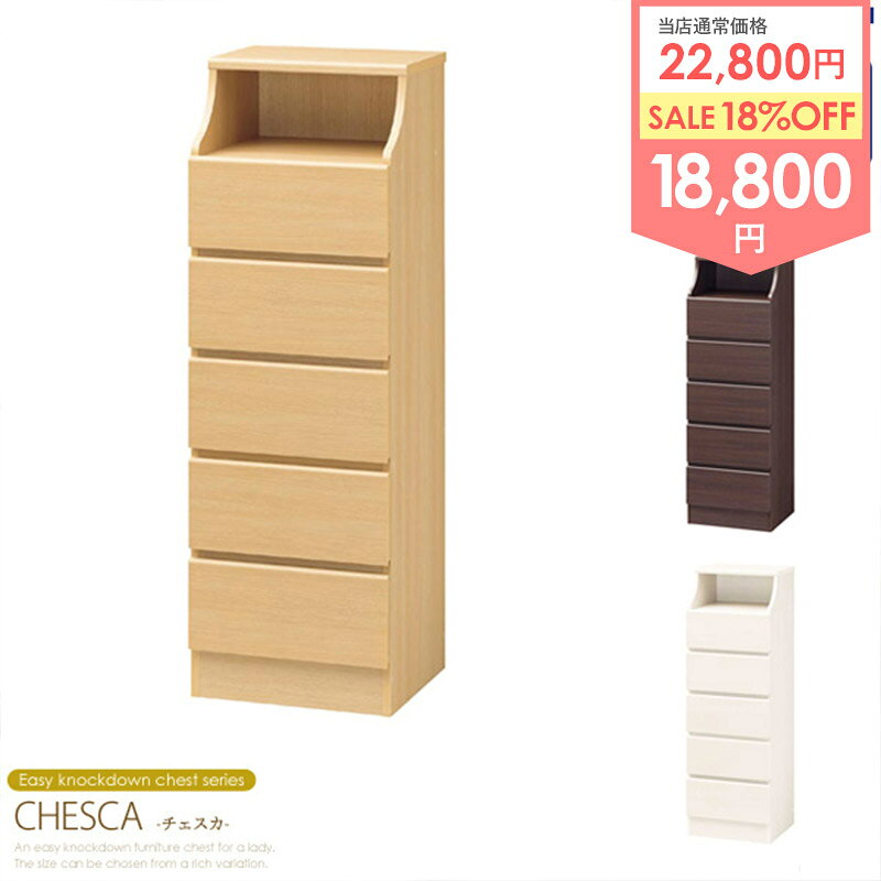 チェスト 5段 幅45cm チェスカ csc-1344h収納家具 リビング収納 チェスト リビングチェスト ローチェスト 洋タンス たんす 箪笥 クローゼット 引き出し 衣類 収納 スリム おしゃれ 木製 北欧 北欧テイスト ホワイト 白 chesca works