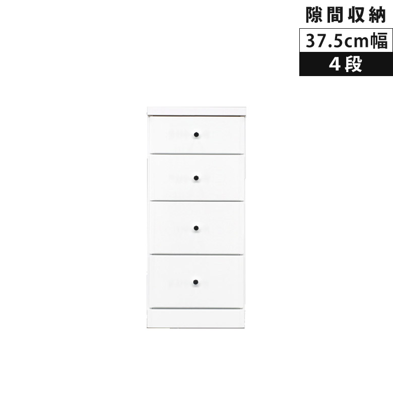 【全商品に使える10%offクーポンあり!!】 チェスト タンス ローチェスト 4段 白 スリム コンパクト 幅37.5cm 引き出し収納 リビング収納 木製 収納 ホワイト 隙間収納 スリムチェスト 引き出し 引出し リビングチェスト 白家具 エナメル スライドレール