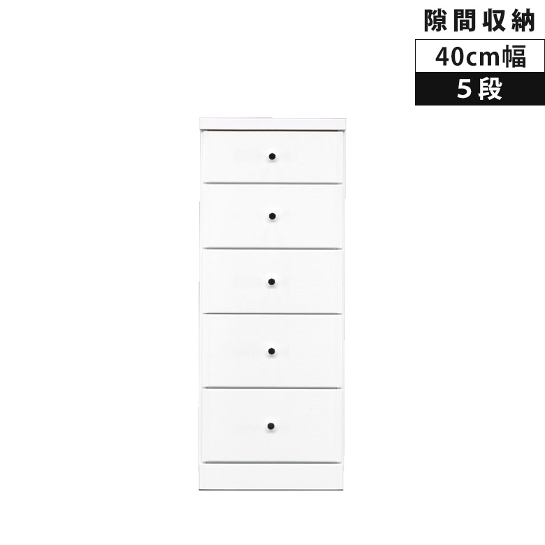 \全商品に使える11%offクーポンあり/ チェスト スリム コンパクト リビング収納 幅40cm 5段 隙間収納 ハイチェスト タンス スリムチェスト 白 ホワイト 木製 収納 チェスト 隙間家具 引き出し収納 引き出し 引出し リビングチェスト 白家具 エナメル