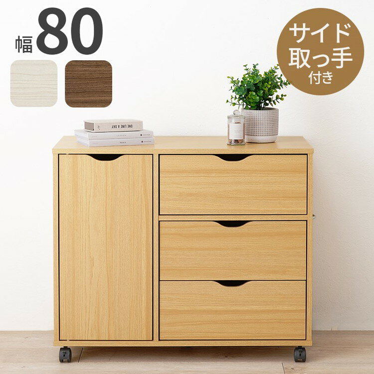 深型収納チェスト キャスター付き 北欧 幅80 奥行40 高さ67 3段 チェスト 扉収納 引き出し 引出し リビングチェスト リビングボード リビング収納 棚 ラック ナチュラル おしゃれ(代引不可)【送料無料】