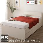 (タイムセール中) (お客様組立) シングルベッド ショート丈 マットレス付き ポケットコイル フラットヘッドボード 頑丈ボックス収納