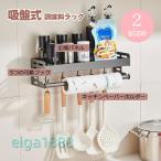 調味料ラック 吸盤式 壁掛け キッチン収納 調味料入れ キッチンペーパーホルダー + 布巾ハンガー付き