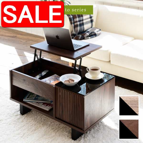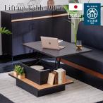 リフトアップテーブル 幅90cm 昇降式テーブル センターテーブル リビングテーブル 収納 木製 PC 北欧 おしゃれ モダン ブラック 黒 日本製 大川家具 0252