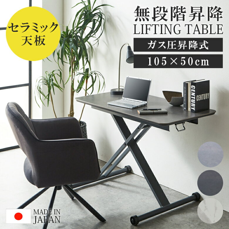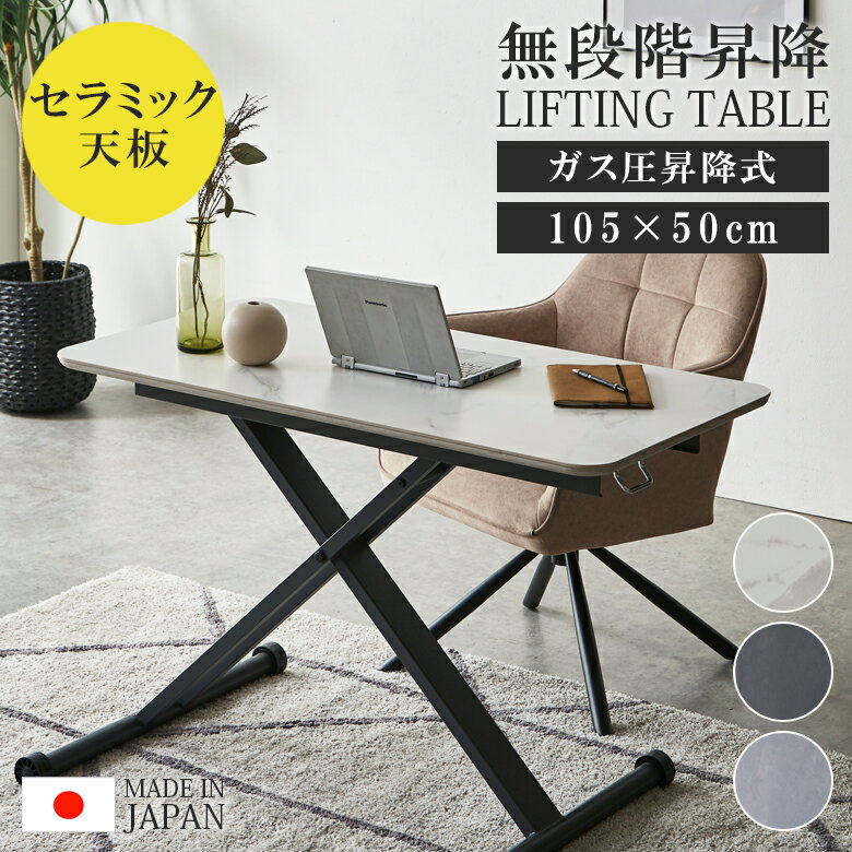 \全商品に使える11%offクーポンあり/ リフティングテーブル 昇降 無段階式 テーブル セラミック 2人用 昇降式 センターテーブル ローテーブル 幅105 おしゃれ 高さ調節 ガス圧 高さ調整 日本製 国産 デスク つくえ リフティング 机 平机 木製