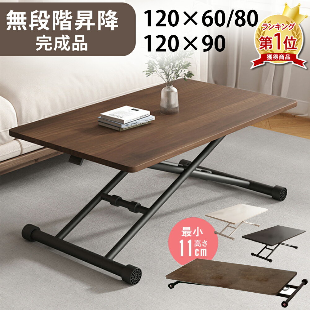 【全商品に使える10%offクーポンあり!!】 テーブル センターテーブル 4人掛け 完成品 高さ調節 ローテーブル リフティング リフティングテーブル デスク つくえ 机 平机 木製 ウォールナット ブラウン ガス圧 高さ調整 4人 リビングテーブル 座卓 幅120