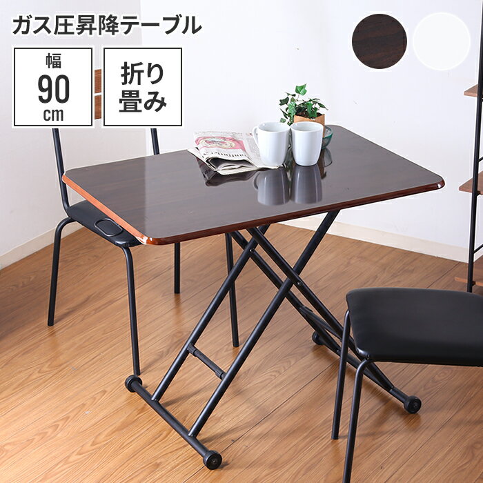 昇降テーブル 120cm ガス圧式 キャスター付き 無段階調整 メラミン ダップ ダイニングテーブル センターテーブル デスク ホワイト グレー ダークグレー 0271