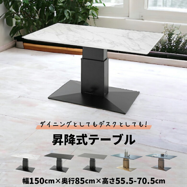 【全商品に使える2%offクーポン!!】 昇降式テーブル 昇降式ダイニングテーブル セラミック天板 4人掛け 幅150cm 北欧 石目調 大理石柄 セラミック柄 リフティングテーブル デスク リビングテーブル センターテーブル おしゃれ モダン シンプル 無段階昇降