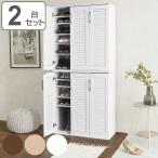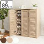 シューズボックス 幅89cm 2点セット 最大56足収納可能 木目 通気性 ( 靴箱 シューズラック 下駄箱 玄関 収納棚 ルーバー 靴 収納 大容量 )