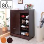 下駄箱 幅80cm 引き戸式 ( 靴箱 和風 靴入れ 玄関収納 玄関 靴 収納 幅80 奥行38.3 高さ95.3 完成品 )