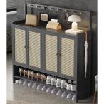 シューズボックス 幅89cm 最大28足収納可能 木目 通気性 ( 靴箱 シューズラック 下駄箱 玄関 収納棚 ルーバー 靴 収納 )