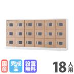 設置無料 ロッカー 18人用 木目 南京錠用 シューズロッカー パーソナルロッカー 更衣ロッカー オフィス 収納 会社 学校 金属 完成品 日本製 GLK-A18Y-NT