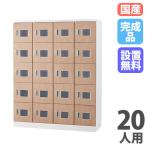 設置無料 ロッカー 20人用 窓付き 鍵なし 木目 シューズロッカー スチールロッカー シューズボックス 下駄箱 オフィス収納 会社 20人用ロッカー GLK-K20W-NT