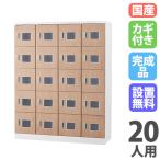 設置無料 ロッカー 20人用 木目 南京錠用 シューズロッカー パーソナルロッカー 更衣ロッカー オフィス 収納 会社 学校 金属 完成品 日本製 頑丈 GLK-A20-NT