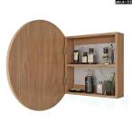 バスルームラウンドミラーキャビネット 無垢材のバスルーム壁掛けミラーボックス 鏡付き薬棚 内部ミラー付き収納ウォールキャビネット バスルームウォー