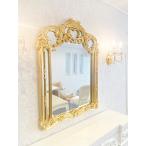 輸入家具 プリンセススタイル ロココミラー W70cm オードリーリボンの彫刻 金箔仕上げ