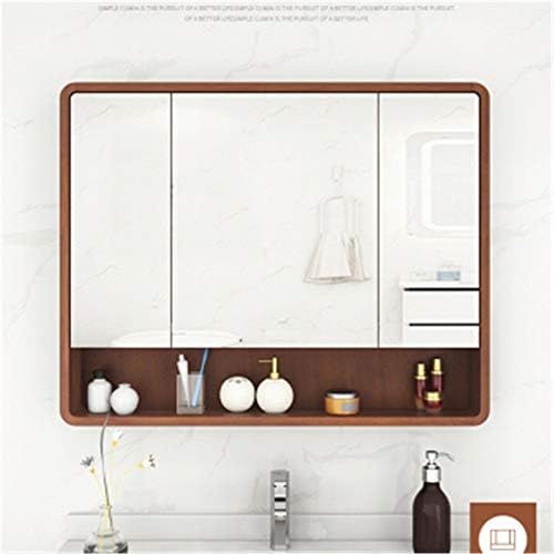 浴室用化粧鏡 洗面化粧台ミラー オーク材のバスルームミラーキャビネット 棚トイレ洗面化粧台収納キャビネット付きダブルドア壁掛け浴室のミラーキャビネットバスルームの化粧鏡 防水でお手入れが簡単 レッド 60CM