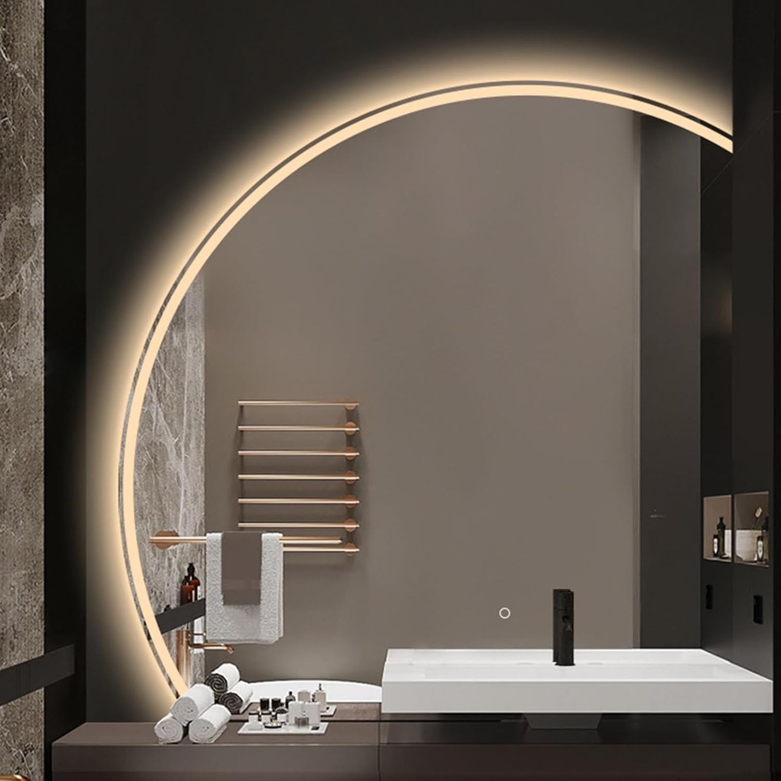 半円LEDバスルームミラー 浴室鏡 浴室鏡照明付き 調光機能付き ミラーキャビネット 洗面所 浴室 ミラー 曇り止め 装飾ミラーおしゃれシンプル姿見洗面鏡 洗面所洗面台ドレッサ