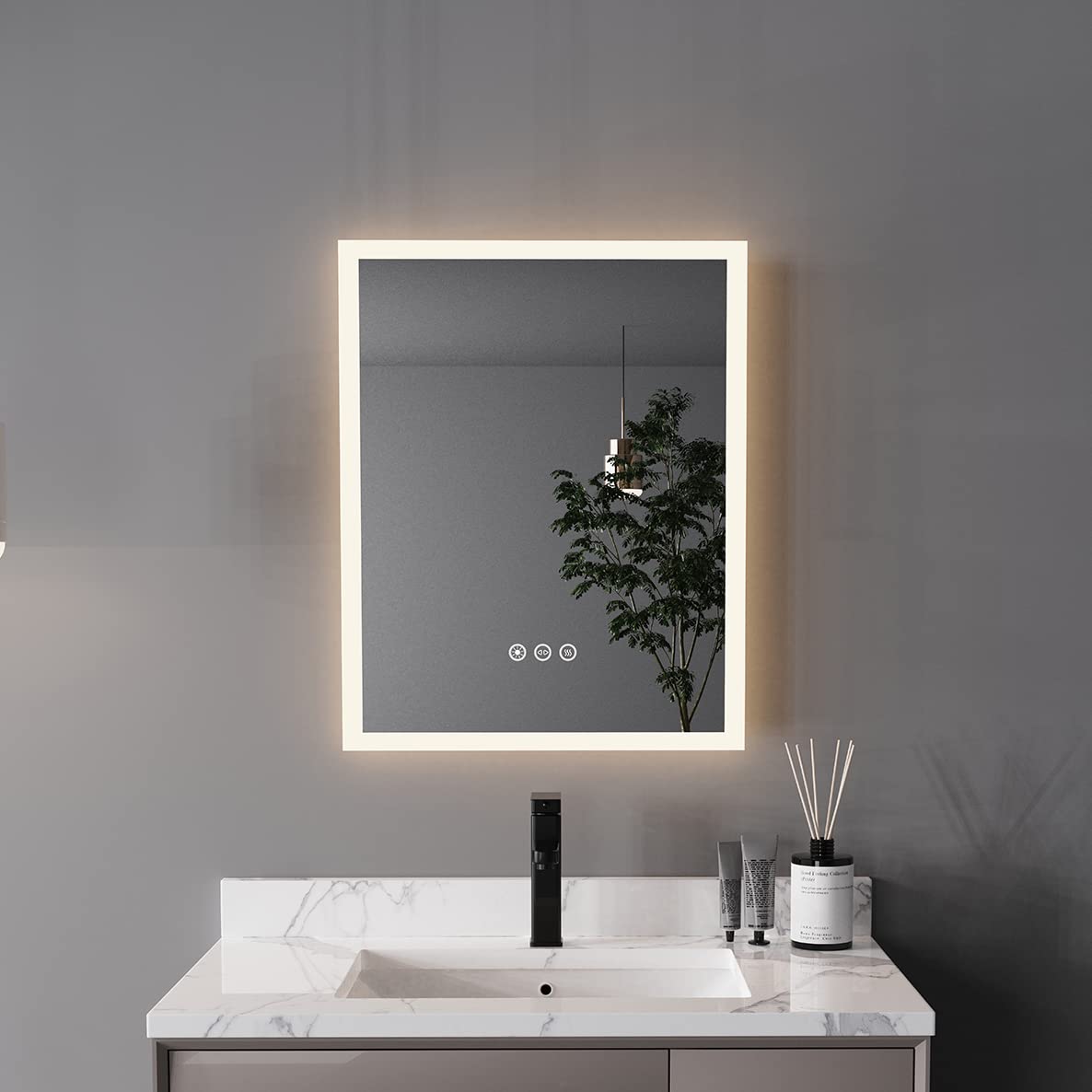 LEDバスルームミラーキャビネット,3つの色温度、明るさ調節可能、防曇機能,304ステンレス,50×70cm,100-130V,50/60HZ