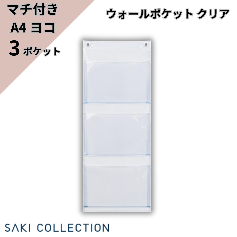 ウォールポケット A4ヨコ 3P クリア 壁掛け マチ付き 3ポケット A4横向き 見せる収納 透明ポケット 壁面収納 W-109 SAKI サキ 日本製 | COLLECTION 大判レターフォルダー おしゃれ 壁掛けポケット 壁掛け収納 雑誌入れ 新聞切り抜き お便り入れ 郵便物入れ 書類入れ 仮置き