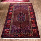 イランの手織り絨毯 ハマダン 229x145cm 六角メダリオン レッド&ネイビー