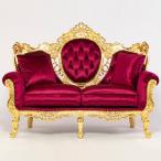 輸入家具 デザイナーズ アンティーク ソファ ソファー ロココ 二人掛 2人掛け 布製 ゴールドフレーム レッド クッション ST1011-2-10F112B