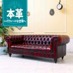 ソファ ソファー 3人掛けソファ チェスターフィールド 三人掛け 3人用 アンティークレッド 本革 座面ボタン Clubman クラブマン VXB3L914