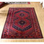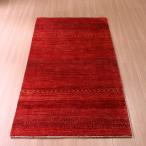 【15%OFFクーポン対象品】ギャッベ イラン製 カシュガイ族手織り 200×150cm レッド 無地 シンプル四隅に動物と植物のモチーフ