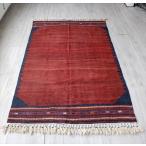 【15%OFFクーポン対象】カシュカイ族の手織りラグ ギャッベ 226×165cm レッド 白タイル