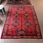 トライバルラグ 部族絨毯 ケルマンシャー 193x131cm ハマダン ペルシャ絨毯 レッド 幾何学モチーフ