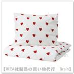 IKEA/イケア BARNDROM/バーンドローム 掛け布団カバー&枕カバー ハート模様/ホワイト レッド(206.236.20/20623620)