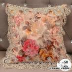 クッションカバー カバーのみ 北欧 50×50cm おしゃれ 花柄 レース 柄 エレガント 高級感 ゴールド レッド イエロー ブラウンフェミニン クラシック