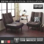 (タイムセール中) ソファーセット 1人掛け×2ソファ2点セット おしゃれ ハイバックコイルソファ レザー