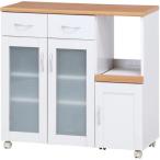 (タイムセール中) キッチンカウンター レンジボード おしゃれ 引き出しトレー キャスター付き 幅90×奥行39.5×高さ89cm ナチュラル×ホワイト